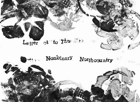 I’ve just come back from the east coast where I visited family in upstate New York’s Northcountry. Most label it ‘North Country,’ two words, but this is not how it’s said, nor how it’s thought. It's where I grew up, although I no longer belong there. I used my lead type for the first time to print the cover of a zine—really, an essay—that I printed at my friend Hope Amico’s home and surreptitiously left copies in co-ops and grocery stores, doctor’s offices and local history museums. My childhood friend drove me around town in a snowstorm so I could deposit some in Little Free Libraries and dilute just slightly their overwhelmingly Christian and asinine contents. I briefly kept a free library in front of our home in Portland a few years ago. I grew depressed by how quickly it became stuffed with Bibles and tracts from Jehovah’s Witnesses.